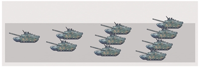 今年參加閱兵的坦克部隊來自北京軍區(qū)第38集團軍。在所有參閱的裝備方隊里,它們將第一個駛過天安門廣場。和其他方隊使用的矩形編隊不同,坦克方隊以箭形編隊前行。這次參閱的坦克為99A式坦克,是99式坦克的改進型,性能與99式坦克相比有本質(zhì)性的提升。坦克方隊受閱長徑達112.6米,每行駛100米,駕駛員需要調(diào)整方向48次才能保證騎線,展現(xiàn)的可謂是“指尖上的舞蹈”。